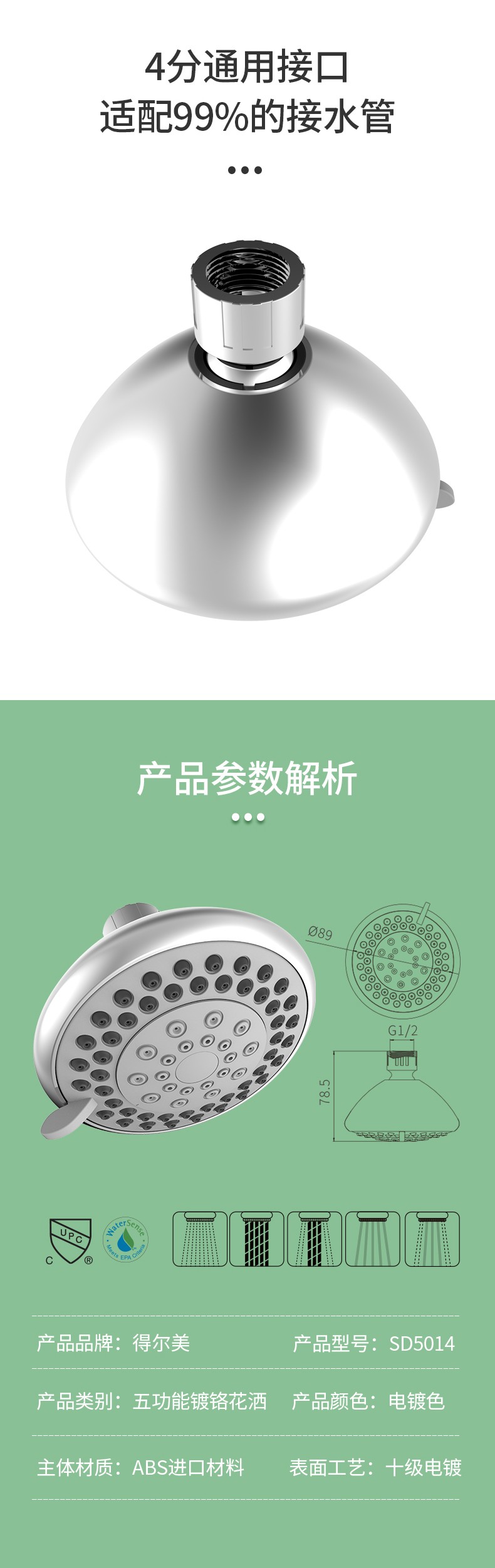 SD5014 5功能蓮蓬頭