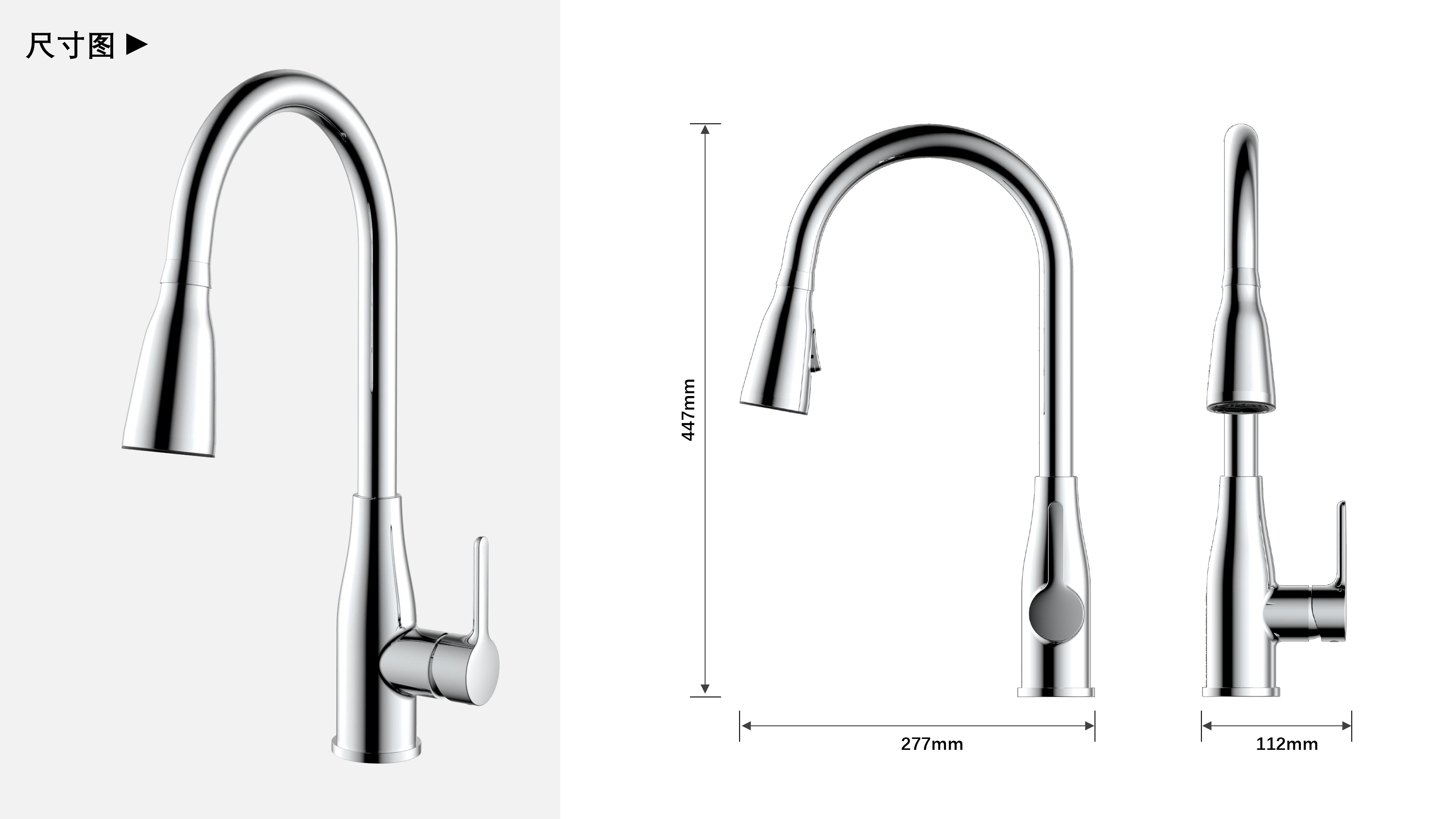 LED廚房抽拉龍頭;智能溫感芯片技術(shù),LED三種燈光顏色顯示溫水-涼水顯示藍(lán)色、溫水顯示綠色、熱水顯示紅色;抽拉頭多角度抽拉使用